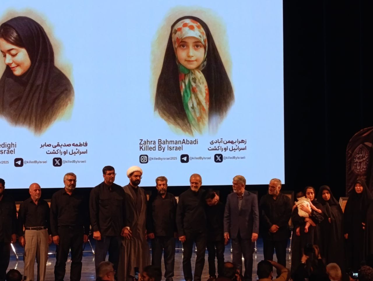 در بخشی از مراسم که مسعود پزشکیان رئیس جمهور حضور دارد، هر یک از خانواده شهدای جنگ ۱۲ روزه با قاب عکسی از شهید والامقام بر روی صحنه حاضر شدهاند.