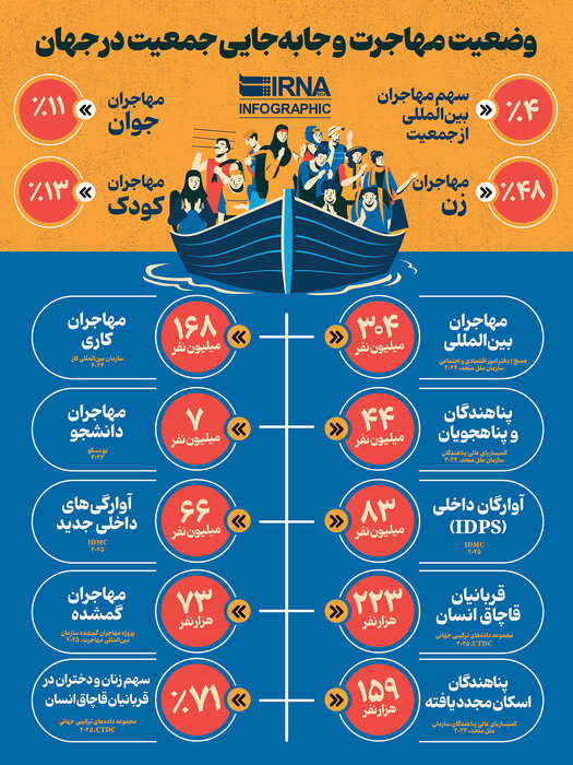 اینفوگرافیک جهانی مهاجرت نشان میدهد که بحران جابهجایی جمعیت، ابعادی فراتر از مرزهای ملی دارد. ایران با میزبانی میلیونها مهاجر، بهویژه مهاجران افغانستانی، نهتنها بخشی از این بحران جهانی است، بلکه به الگویی برای سیاستهای انسانی و ادغام اجتماعی تبدیل شده است. در شرایطی که جهان با افزایش آوارگی، قاچاق انسان و مهاجران گمشده مواجه است، رویکرد ایران در پذیرش و حمایت از پناهندگان، چالشی جهانی را به فرصتی برای همکاری منطقهای و بینالمللی بدل کرده است.